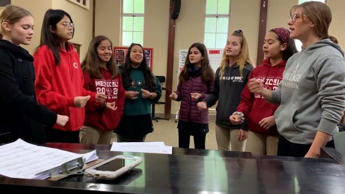 The Middle/High School Vocal Arts department at Village Christian School builds upon decades of the choral tradition and extends the student experience into new and modern directions, including incorporating technology, apps, recording sessions, and creative exercises including songwriting, song arranging, virtual ensembles, and more. Students are given a thorough foundation in vocal technique, sight-reading, and ensemble harmonizing while developing their musical imaginations and personalities through the exploration of music creation and through collaborative projects.