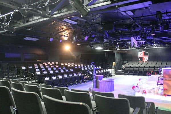 A primary component of the Fine Arts initiative of The Village Campaign, the auditorium remodel project includes retractable seating platforms, a brand new ceiling-mounted lighting grid, improved sound and lighting, new stage, and a redesigned exterior façade.