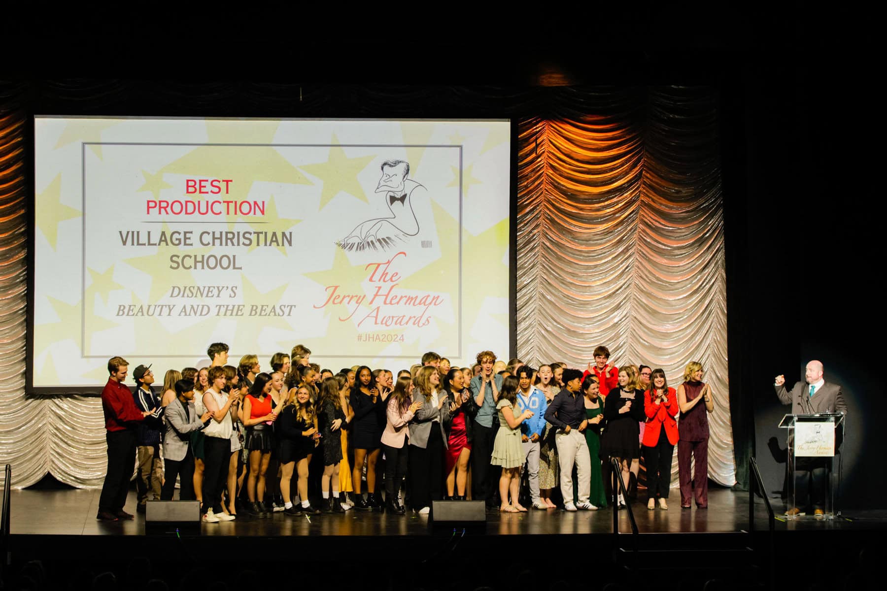 For the second time in school history, VCS performed live on the legendary Hollywood Pantages Theatre stage, this time taking home the top award for Best Production for “Disney’s Beauty and the Beast” at the prestigious Jerry Herman Awards on May 5.